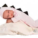 Kleertjes voor pop met dinosaurusstijl, ideaal voor kinderen vanaf 3 jaar. Ontworpen voor New Born poppen van 43-44 cm, biedt een warm en comfortabel milieu dankzij de fleece slaapzak.