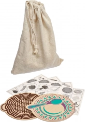 In de set zitten ook 4 zwart-wit voorbeeldkaarten voor snelle observatiespelletjes en oefening in sorteren. De tegeltjes kunnen na het spelen worden opgeborgen in de sluitbare linnen zak, zodat er niets verloren gaat. De houten elementen hebben gladde randen en heldere, begrijpelijke illustraties voor makkelijke herkenning, inclusief uitdagers zoals paddenstoelen – sommige eetbaar, andere niet-eetbaar.