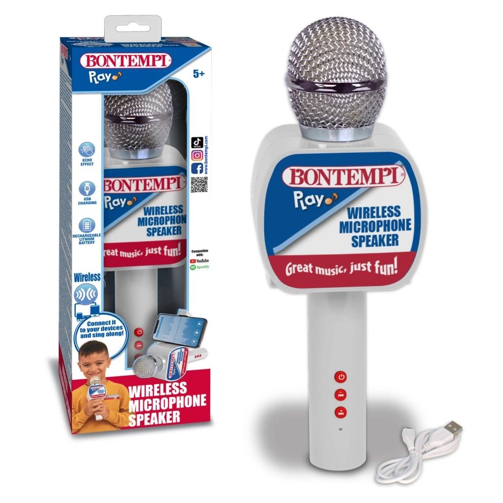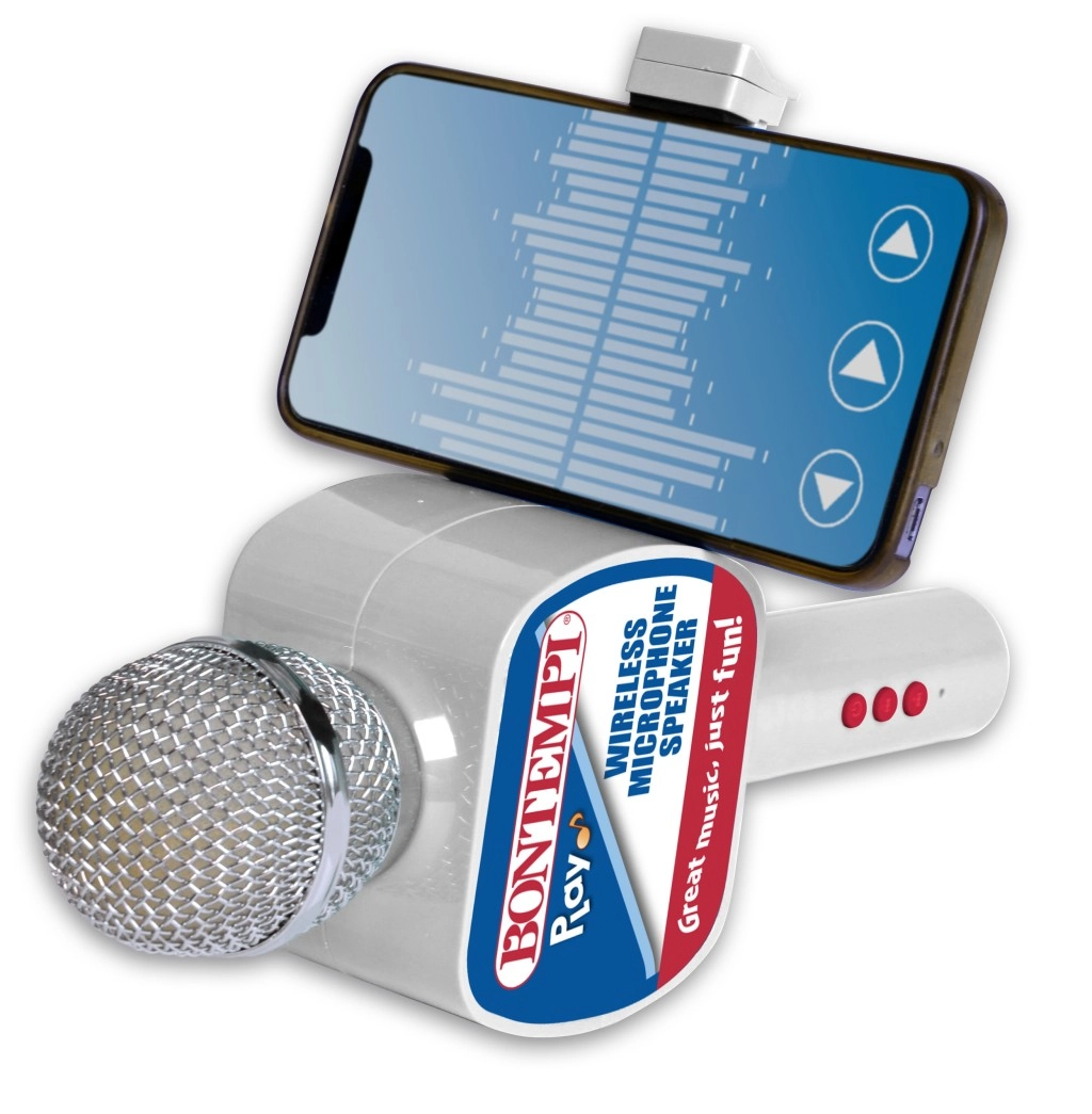 Geniet overal en altijd van karaoke met deze praktische draadloze microfoon. Dankzij de ingebouwde luidspreker, draadloze verbinding en eenvoudige bediening is hij ideaal voor zingen thuis, feestjes en kinderpartijtjes. De telefoonhouder en het echo-effect zorgen voor nog meer plezier.