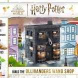 Bouw alsof het echt is: de combinatie van echte baksteentjes, houten latjes en gedetailleerde decoraties creëert een indrukwekkend model van Ollivanders winkel.