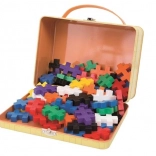 De set bevat een robuust metalen koffertje met handgreep en sluiting, dat de blokjes bij elkaar houdt en het dragen en opbergen vergemakkelijkt. Zo hebben kinderen hun bouwset altijd bij de hand – thuis, op uitstapjes en bij de grootouders. Het bonte palet van basiskleuren nodigt uit tot eindeloos veel ideeën en spel. Let op: de kleuren van de stukjes kunnen afwijken van de afbeelding.