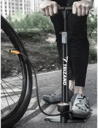 De betrouwbare TRIZAND vloerpomp combineert een robuuste metalen constructie met nauwkeurige drukmeting via een analoge manometer. Dankzij de lange slang met snelspanklem bereikt u ventielen moeiteloos en sluit u ze lekvrij af. De maximale druk van 16 bar / 230 PSI is geschikt voor racebanden en ander sport- en vrijetijdsuitrusting.