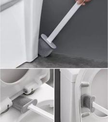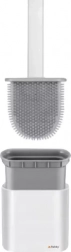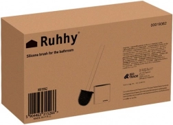 De compacte siliconen WC-borstel RUHHY met houder biedt hygiënische en zachte reiniging zonder krassen, een flexibele kop voor elke hoek en twee opbergmogelijkheden – vrijstaand of met een zelfklevende montage zonder boren. Het moderne wit‑grijze design past perfect in elke badkamer.