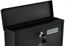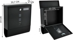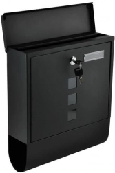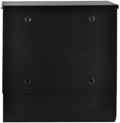 Elegante zwarte brievenbus van duurzaam, galvanisch verzinkt metaal voor veilige bezorging van uw post. Heeft een afgedekte inwerpgleuf voor formaat A4, een afsluitbaar deurtje met 2 sleutels en een praktische houder voor kranten en folders. De robuuste constructie met weersbestendige bescherming en ventilatieopeningen houdt zendingen droog; montage is eenvoudig dankzij de meegeleverde accessoires.