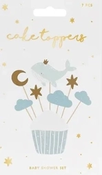 Schattige muffinversieringen met het motief van een walvis laten elk kinderfeestje of iedere party stralen. De mix van patronen en kleuren geeft cupcakes een speelse look. In de verpakking zitten 7 stuks met een hoogte van ca. 11–13,5 cm – ideaal voor snel en opvallend decoreren.