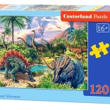 Kleurrijke kinderpuzzel met dinosaurussen en vulkanen met 120 stukjes die na het leggen een afbeelding van 32 × 23 cm vormen. Hoge kwaliteit, levendige kleuren en een ideale moeilijkheidsgraad voor kinderen vanaf ca. 6 jaar stimuleren concentratie, geduld en verbeeldingskracht.