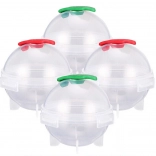 Met deze praktische set van vier mallen maak je grote ijsballen met een diameter van 5 cm die er geweldig uitzien in het glas en langzamer smelten dan klassieke ijsblokjes. Dankzij het transparante materiaal zie je hoeveel water je hebt gevuld en de vergrendelclips zorgen voor een veilige afdichting zonder morsen.