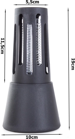 Effectieve UV-vanger voor muggen, vliegen en ander vliegend ongedierte voor thuis en op het terras. Straalt aantrekkelijk UV-licht uit en schakelt insecten uit via contact met een elektrisch rooster. Het apparaat werkt zonder chemicaliën en geur, heeft een stille werking, laag verbruik van 5 W en wordt gevoed via USB. Eenvoudig schoon te maken dankzij een afneembaar deel en reinigingsborsteltje.