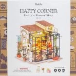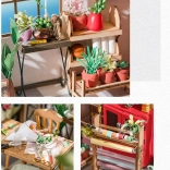 Stwórz własną malowniczą kwiaciarnię z dołączoną oranżerią oraz wieloma roślinami, półkami i wycinanymi dodatkami. Zestaw zawiera wstępnie wycięte elementy ze sklejki, elementy papierowe i tekstylne oraz zestaw narzędzi, dzięki którym powstanie realistyczny model z napisem „Flower Shop” i przezroczystą szklaną częścią. Po złożeniu posłuży jako stylowa dekoracja wnętrza.