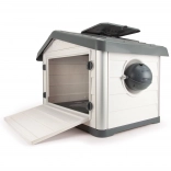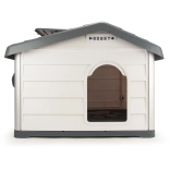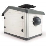Dwuspadowy dach z regulowanym okienkiem wentylacyjnym zapobiega gromadzeniu się wody, śniegu i zanieczyszczeń oraz zapewnia stałą cyrkulację powietrza dla komfortu Twojego pupila.