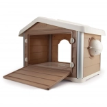 LOBOO SMARTKAVE ALASKA to praktyczny i piękny domek, który łączy nowoczesny design, wysoką trwałość i przemyślane detale dla maksymalnego komfortu Twojego pupila. Dach dwuspadowy zapobiega gromadzeniu śniegu i zanieczyszczeń, regulowana wentylacja zapewnia cyrkulację powietrza, a uchylana tylna ścianka potrafi latem zamienić zamkniętą przestrzeń w otwartą i przewiewną altanę.