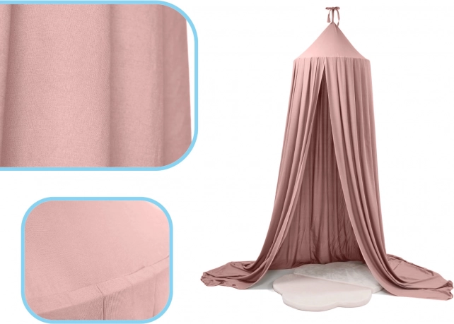 Różowy baldachim odmieni każdy pokój dziecięcy w bajkowe miejsce. Lekki, przewiewny materiał subtelnie otula przestrzeń nad łóżeczkiem lub strefą zabawy, tworząc prywatność do odpoczynku, czytania i fantastycznych zabaw. Neutralny odcień różu łatwo łączy się z większością dekoracji.