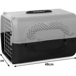 Transporter dla najmniejszych domowych zwierzątek, takich jak psy, koty, króliki czy fretki, jest wykonany z wysokiej jakości i wytrzymałego plastiku, który gwarantuje długą żywotność. Duże otwory wentylacyjne zapewniają maksymalny komfort podczas podróży. Uchwyt z gumową powłoką i możliwość otwierania drzwiczek według potrzeby na lewą lub prawą stronę zwiększa funkcjonalność.
