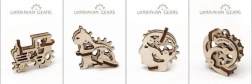 Ugears 3D mechaniczne drewniane puzzle – 4 mechaniczne breloki Symbole charakteru