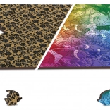 • Dwustronne puzzle 2w1 – awers z obrazkiem, rewers ze wzorem do układania według kształtów