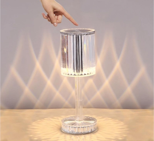 Ta dekoracyjna kryształowa lampka LED zamieni każdy kąt w przytulną oazę. Przezroczyste, żebrowane korpus tworzy zachwycające efekty optyczne na ścianach i blatach, a energooszczędne LED zapewniają przyjemne, długotrwałe światło. Sterowanie jest maksymalnie wygodne – kolory i tryby zmienisz pilotem lub dotykiem.