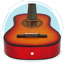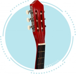 Korpus gitary jest wyposażony w mostek i podstrunnicę, z których wychodzi 6 strun. Łatwa wymiana strun jest praktyczna dla rodziców i dzieci.