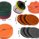 Co otrzymasz: kombinację gąbek polerskich, padów polerskich i szczotek w różnych średnicach i kształtach, w tym przedłużkę do trudno dostępnych miejsc. Po użyciu gąbki można łatwo wyczyścić i użyć ponownie.