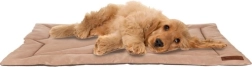 Dzięki wodoodpornemu spodowi z ekoskóry legowisko dobrze znosi wilgoć i zabrudzenia. Jest składane i lekkie, więc łatwo zabrać je na piknik, do auta czy na wakacje. Uniwersalne wykonanie pasuje dla psów, kotów, królików i innych mniejszych pupili, a naturalna kolorystyka wkomponuje się w każdy wystrój.