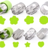 Zestaw ośmiu wielofunkcyjnych wykrawaczek umożliwia łatwe kształtowanie owoców i warzyw w różne kreatywne formy. Ergonomiczne plastikowe uchwyty chronią ręce, a ostre nierdzewne ostrza przyspieszają krojenie.