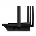 Router oferuje nowoczesne zabezpieczenia z obsługą WPA3, zaporą SPI oraz kontrolą rodzicielską. Posiada także jeden port USB 3.0, cztery gigabitowe porty LAN oraz jeden gigabitowy port WAN, co zapewnia elastyczność przy rozbudowie sieci.