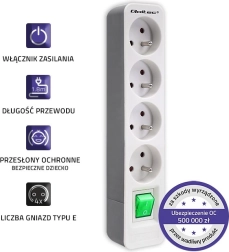 Ten przedłużacz został zaprojektowany, aby spełniać Twoje codzienne potrzeby w domu lub biurze, jednocześnie oferując elegancję i prostotę. Dostępny w wersji z 4 gniazdami i długością 1,8 metra, zapewnia wystarczający zasięg. Podświetlany wyłącznik Quick Switch dodatkowo ułatwia obsługę, pozwalając na szybkie wyłączanie i włączanie urządzeń jednym dotknięciem.