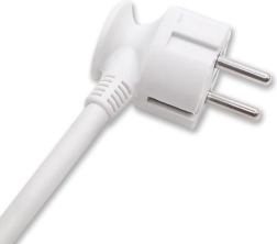 Estetyka również ma znaczenie – biało-szara kolorystyka sprawia, że przewód idealnie komponuje się z większością wnętrz. Uniwersalne uchwyty montażowe umożliwiają łatwą instalację pionową lub poziomą – na przykład na ścianie lub pod biurkiem – przyczyniając się do większego porządku i estetyki Twojej przestrzeni roboczej lub domowej.