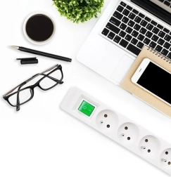 Biało-szara kolorystyka sprawia, że listwa zasilająca pasuje do każdego wnętrza, łącząc elegancję z funkcjonalnością.