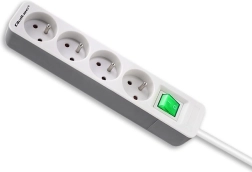 Przedłużacz z wyłącznikiem – 4 gniazda, 1,8 m, biało-szary