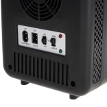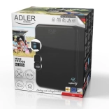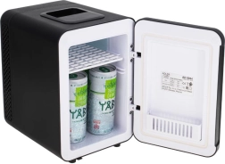 Wnętrze o pojemności 4 l z półką i koszykiem w drzwiach ułatwia przejrzystą organizację mniejszych butelek, puszek i kubeczków. Solidna rączka oraz kompaktowe wymiary zapewniają wygodne przenoszenie, a zasilanie 230 V/12 V pozwala używać lodówki w domu i w samochodzie. W zestawie znajdują się oba przewody zasilające, a z tyłu umieszczono przełącznik HOT/COLD.