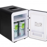 Lekka mini lodówka z praktycznym uchwytem jest łatwa w przenoszeniu między domem, biurem i samochodem. Minimalistyczny czarny design pasuje do każdej przestrzeni.