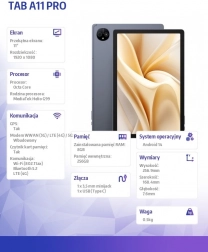 Sercem urządzenia jest ośmiordzeniowy MediaTek Helio G99 (do 2,2 GHz), który wraz z 8 GB RAM i możliwością wirtualnego rozszerzenia o kolejne 8 GB zapewnia żwawy multitasking. Pamięć 256 GB można rozszerzyć kartą microSD aż do 1 TB, więc nie zabraknie miejsca na aplikacje, multimedia i dokumenty. O świetny czas pracy dba bateria 8800 mAh z szybkim ładowaniem 18W.