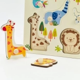 Te drewniane puzzle są idealnym wyborem dla dzieci, które zaczynają odkrywać świat zwierząt. Dzięki guzikom ułatwiającym chwytanie i solidnemu wykonaniu są doskonałym narzędziem do rozwoju motoryki i umiejętności rozpoznawania u dzieci od 18 miesięcy.