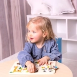 Dzieci nie tylko uczą się rozpoznawać zwierzęta, ale także ćwiczą swoją motorykę precyzyjną dzięki łatwo chwytalnym guzikom.