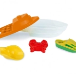 Ta kolorowa plastikowa łódka jest niezbędnym dodatkiem dla każdego dziecka, które lubi bawić się na plaży. Zestaw zawiera również różne foremki i pojemniki, które umożliwiają tworzenie w piasku i wodzie.