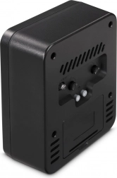 Budzik z analogowym zegarem oraz cyfrowym termometrem i higrometrem, czarny