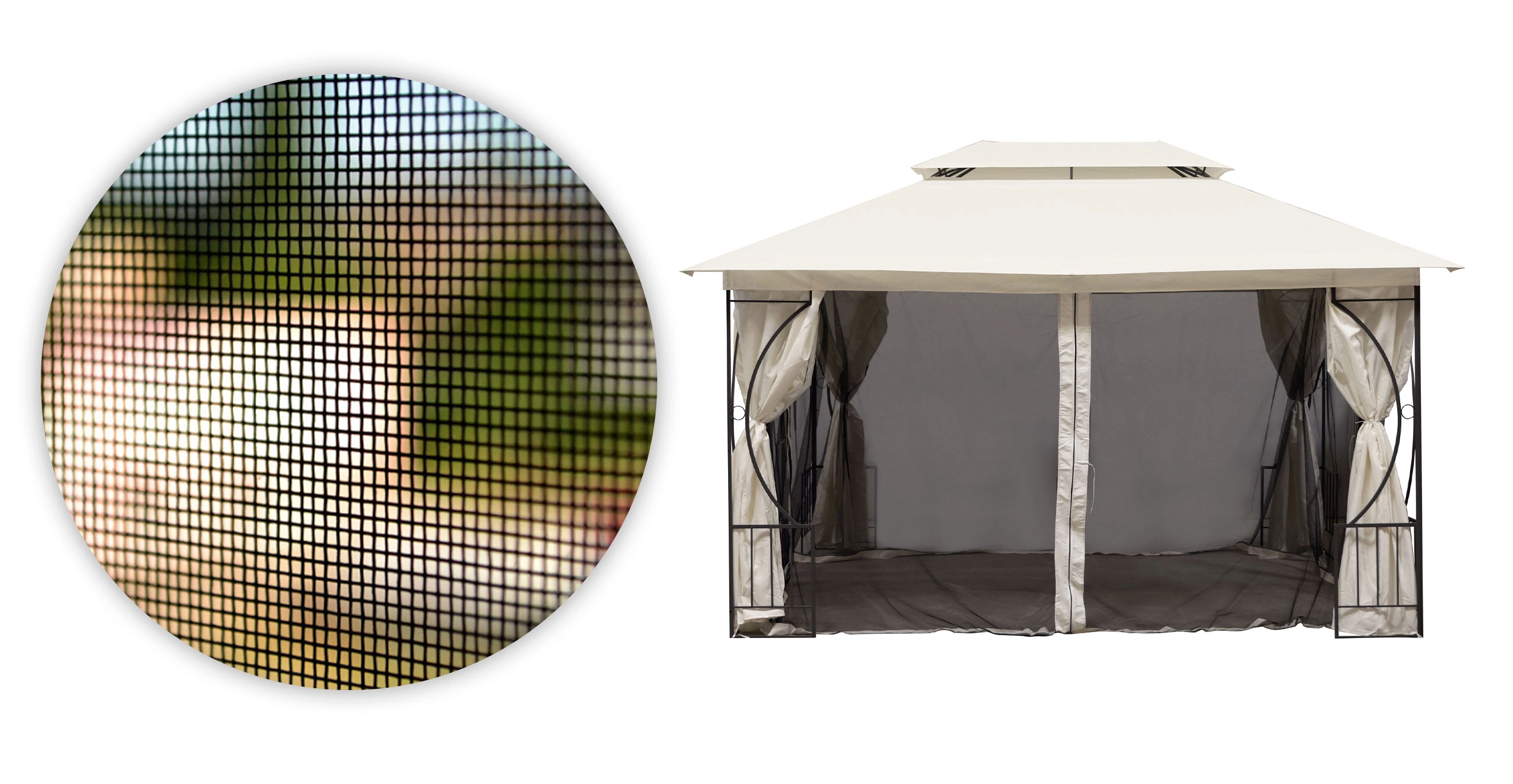 Wykonana z trwałych włókien poliestrowych, siatka słynie z odporności na warunki atmosferyczne. Skutecznie blokuje komary, muchy i inne owady, tworząc ochronną barierę, jednocześnie zachowując kontakt z naturą. Jej siatkowa struktura nie blokuje naturalnego światła ani cyrkulacji powietrza, dzięki czemu altana pozostaje jasna, przewiewna i komfortowa nawet w upalne dni.