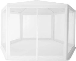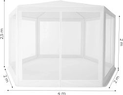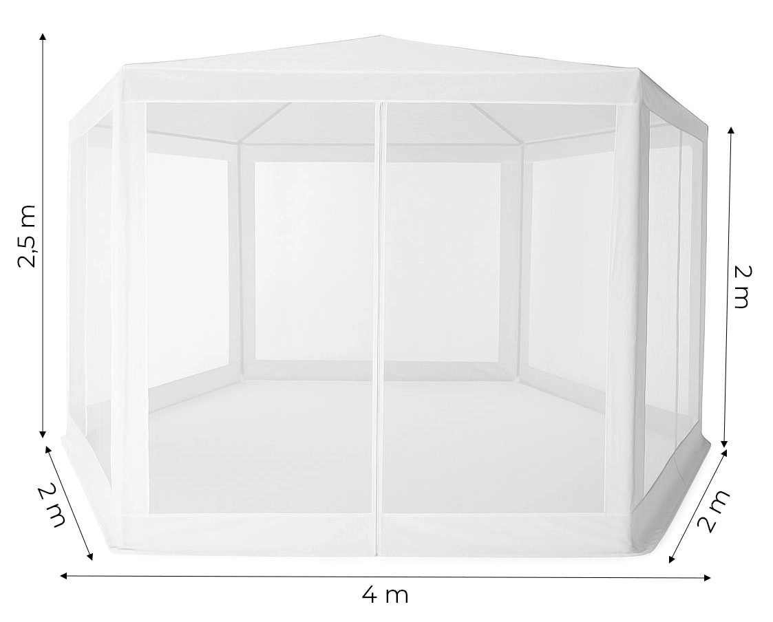 Stabilna metalowa konstrukcja oraz sześć ścian z moskitierą zapewniają wygodne i bezpieczne użytkowanie. Praktyczne wejście na zamek umożliwia szybki dostęp do wnętrza pawilonu.