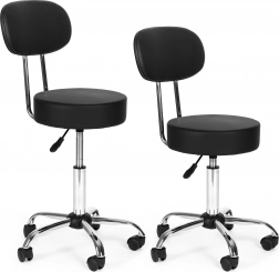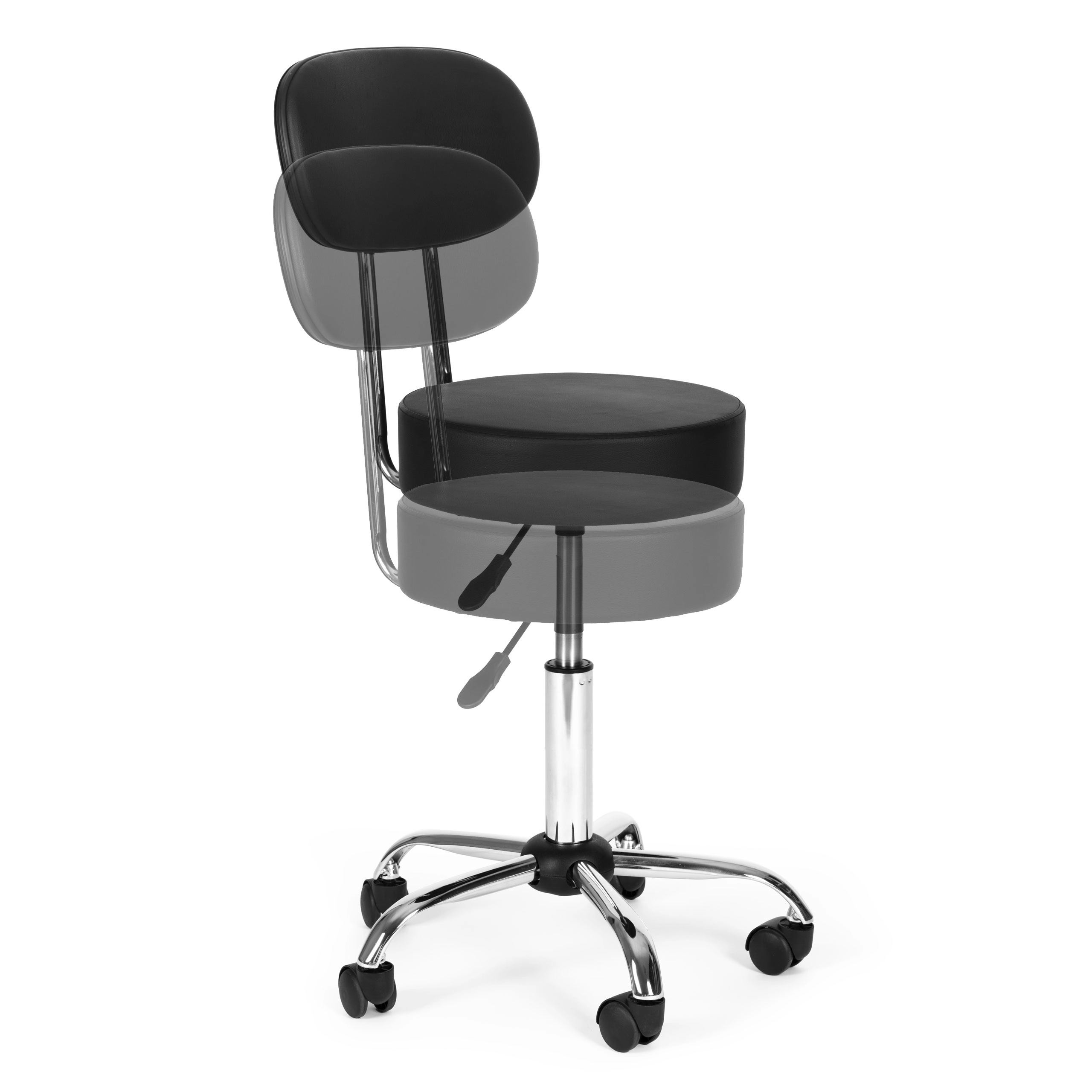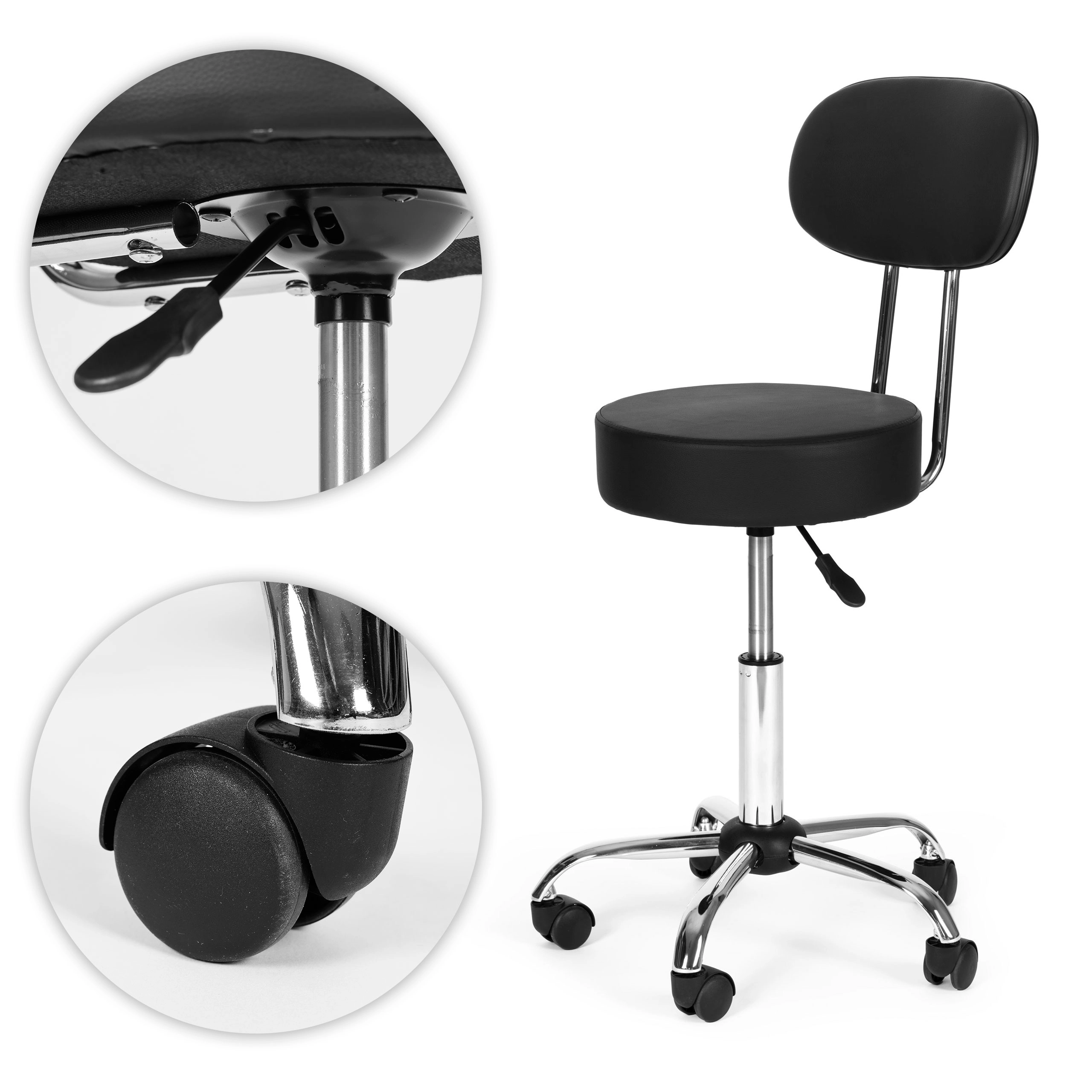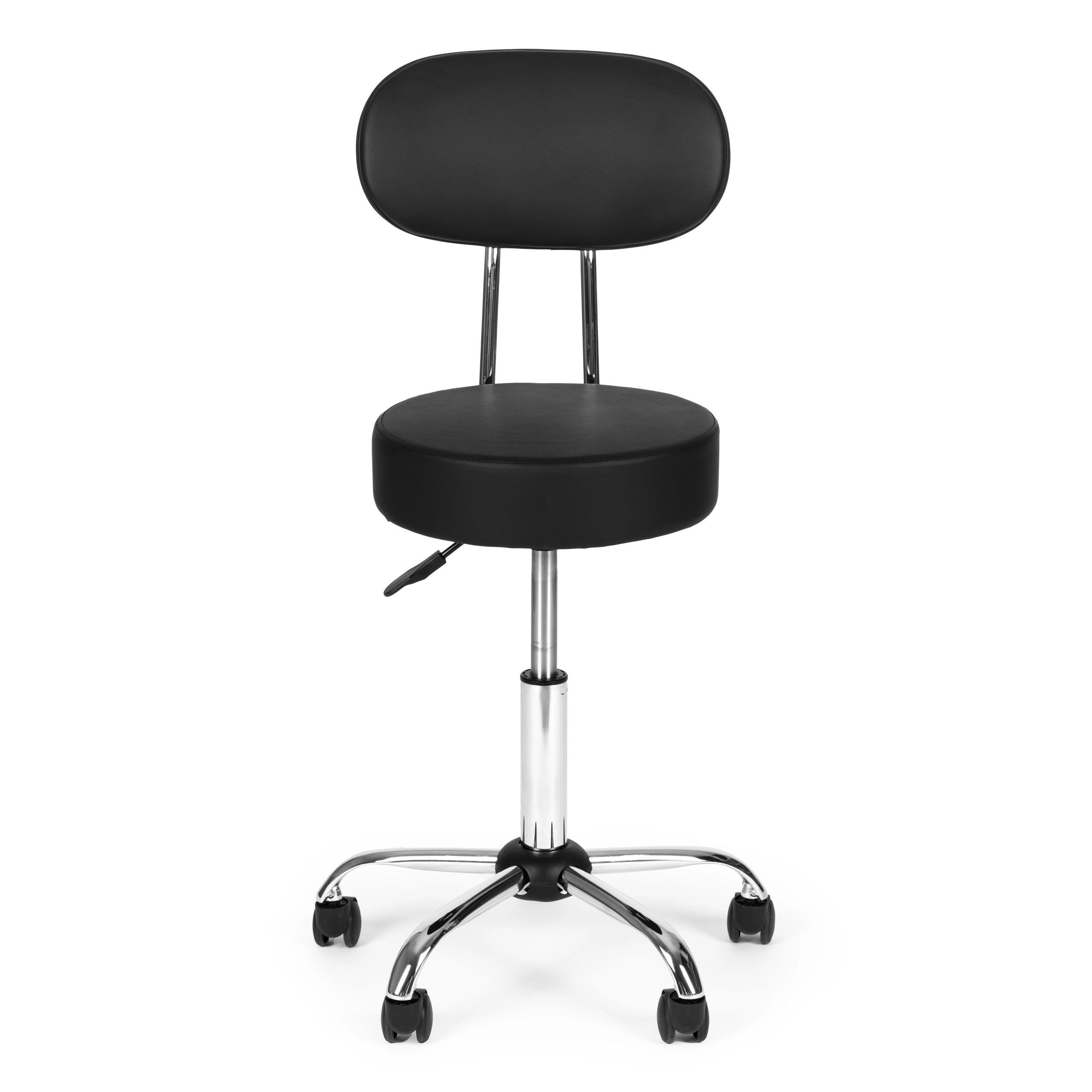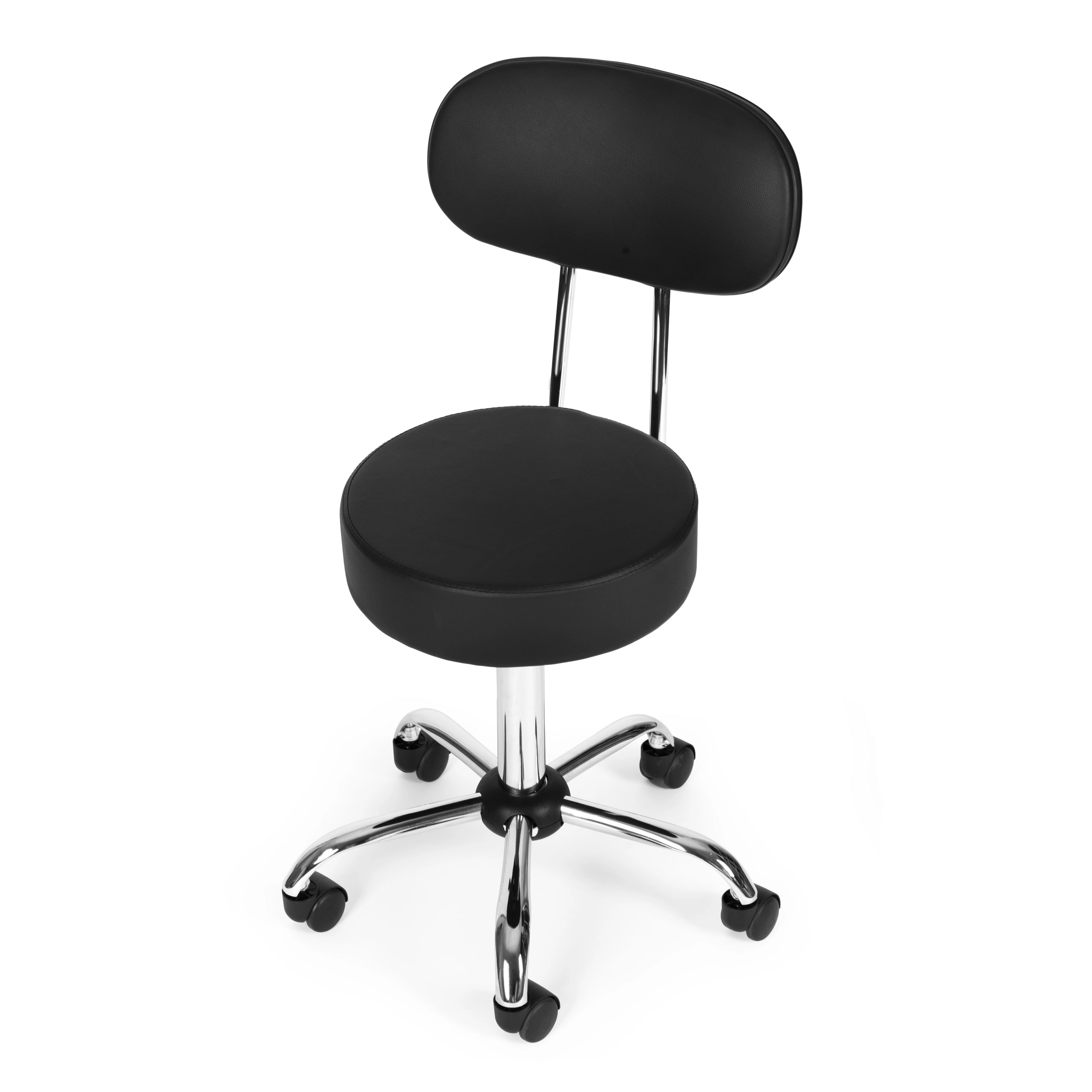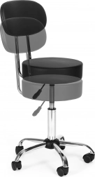 Profesjonalny obrotowy stołek z oparciem do salonów kosmetycznych, fryzjerskich i placówek medycznych. Oferuje płynną regulację wysokości, obrotowe siedzisko 360°, stabilną metalową konstrukcję oraz trwałą tapicerkę z ekoskóry PVC. Dzięki miękkiej piance 8 cm, pięcioramiennej podstawie na kółkach i udźwigowi 136 kg zapewnia wygodę, mobilność i długą żywotność.