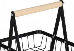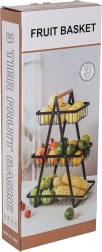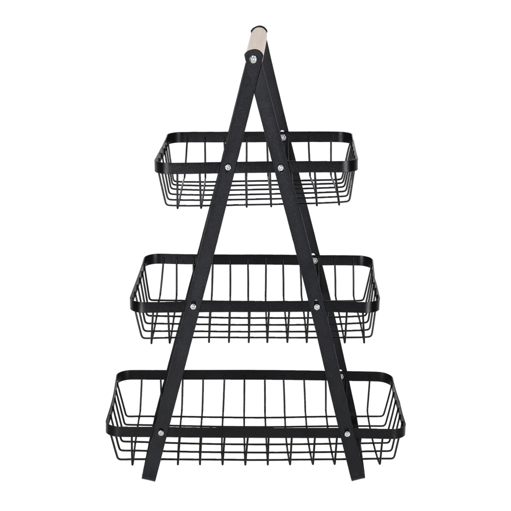 Trzypoziomowy metalowy kosz na owoce z drewnianym uchwytem, czarny