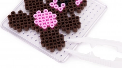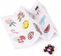 Przezroczyste podstawki w różnych kształtach, dołączone szablony i pęsety ułatwiają precyzyjne rozmieszczanie koralików. Papier ochronny chroni wzór podczas zaprasowywania.