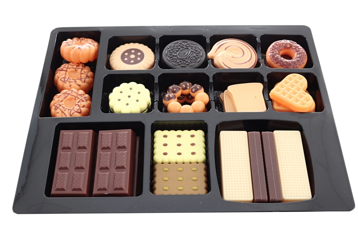 Zabawny dziecięcy zestaw jedzenia zawiera wafle, ciasteczka, czekoladę i gofry z wysokiej jakości plastiku. Świetny do zabawy w kuchnię, rozwoju wyobraźni i umiejętności społecznych. Dostarczany w pudełku prezentowym. Odpowiedni dla dzieci od 3 lat.