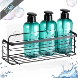 Przyklejana metalowa półka prysznicowa Vilde, czarna