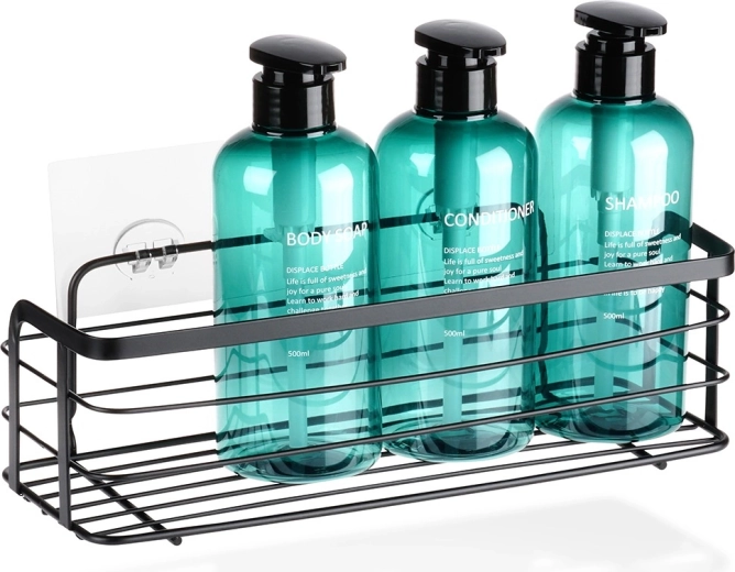 Praktyczna, przyklejana półka prysznicowa w eleganckim czarnym kolorze utrzyma Twoje kosmetyki pod ręką i w porządku. Dzięki montażowi samoprzylepnemu bez wiercenia łatwo przymocujesz ją do gładkich płytek. Otwarta, druciana konstrukcja zapewnia szybki odpływ wody, a trwały, malowany proszkowo metal jest łatwy do czyszczenia i nierdzewny. Idealna pod prysznic, przy wannie i umywalce, a także do kuchni na przyprawy.
