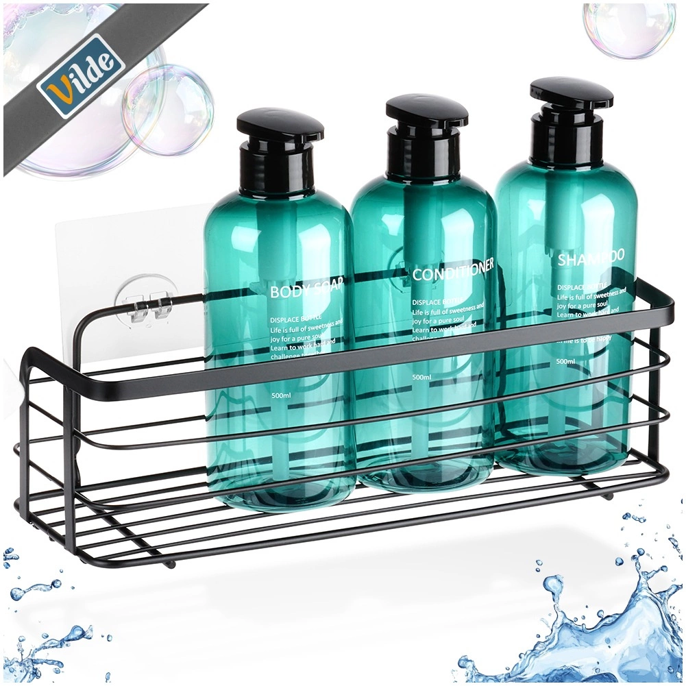 Uporządkuj łazienkę stylowo i bez wiercenia. Przyklejana półka Vilde w industrialnym stylu loft mocno trzyma się gładkich, odtłuszczonych powierzchni dzięki przezroczystej samoprzylepnej podkładce. Wymiary 31 × 12 × 9,5 cm zapewniają dużo miejsca na żele pod prysznic, szampony i gąbki, a podwyższona barierka zapobiega spadaniu przedmiotów.