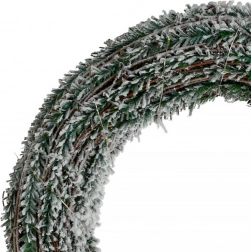 Zielone igliwie z delikatnym białym natryskiem naśladuje świeżo ośnieżone gałązki, nadając autentyczny zimowy wygląd.