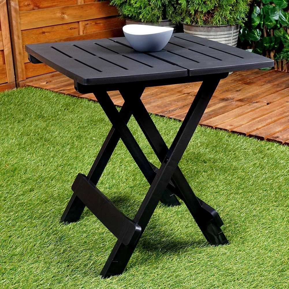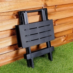Szukasz praktycznego i uniwersalnego stolika do użytku na zewnątrz? Ten składany stolik ogrodowy w czarnym kolorze to świetny wybór do ogrodu, na balkon, taras oraz w podróży. Stabilna konstrukcja z czterema nogami zapewnia niezawodne użytkowanie, zarówno podczas serwowania, odkładania napojów, jak i jako podstawa pod kwiaty i dekoracje.