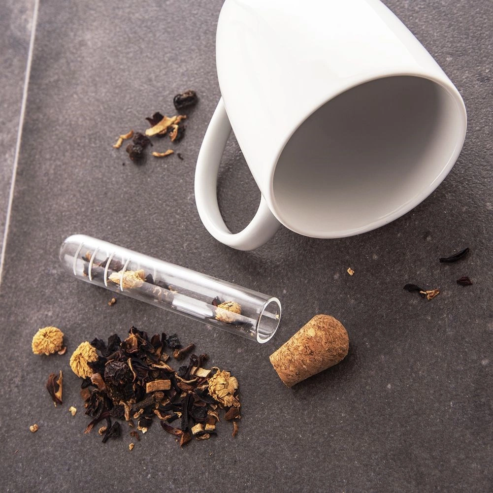 Praktyczne szklane sitko do herbaty i ziół w kształcie fiolki o długości 13 cm zapewnia czysty napar bez listków w filiżance. Dzięki korkowemu korkowi łatwo je wyjąć i wygodnie się nim manipuluje. Wykonane z wysokiej jakości, przejrzystego szkła, które jest odporne, higieniczne i doskonale podkreśla kolor napoju. Idealne dla miłośników herbat sypanych i mieszanek ziołowych.