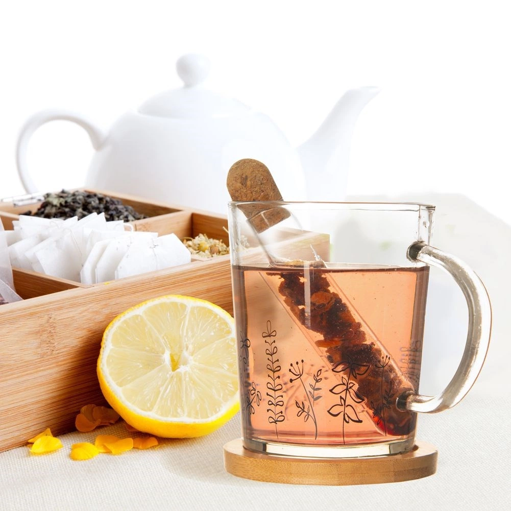 Kształt fiolki pasuje do większości kubków i szklanek. Długi korek z korka umożliwia łatwe wyciągnięcie bez poparzeń.