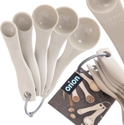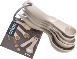 Ten pięcioczęściowy zestaw miarek ułatwia codzienne przygotowywanie posiłków. Dzięki wyraźnym oznaczeniom w mililitrach oraz w jednostkach łyżeczka/łyżka odmierzysz przyprawy, cukier, mąkę i płyny z maksymalną dokładnością. Neutralny beżowy design pasuje do każdej kuchni.